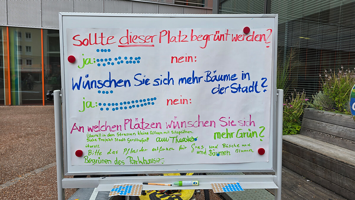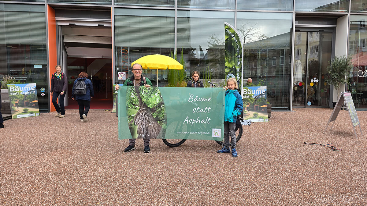 „Bäume statt Asphalt“: Flashmob vor der Stadtbücherei